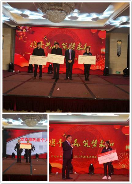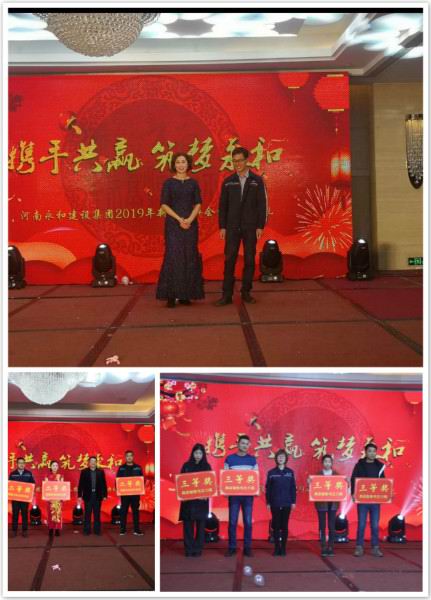 金戈鐵馬聞征鼓,只爭朝夕啟新程。2019年1月26日下午,“攜手共贏筑夢永和”——河南永和建設集團2019年新春團拜會暨頒獎典禮在錦江國際酒店隆重召開,信陽市政協(xié)副主席、市工商聯(lián)主席陳豫,信陽市平橋區(qū)政協(xié)副主席陳明德、信陽市委統(tǒng) 戰(zhàn)部辦公室主任楊輝、信陽市平橋區(qū)工商聯(lián)主席張虹、商城縣、羅山縣、五里辦事處等多位領導、信陽日報社、信陽電視臺等多家媒體領導及新聞記者、河南永和建設集團有限公司全體員工及家屬、合作商,社會友人出席了本次團拜會。大家歡聚一堂,辭舊迎新、表彰、文藝展演,共同度過了振奮人心又愉快難忘的時光。