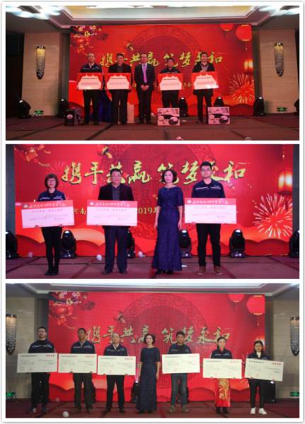 團拜會中間還穿插了抽獎環(huán)節(jié),隨著各等獎項的抽取,不斷掀起團拜會的高 潮。同時,團拜會還揭曉了2018年為永和集團作出突出貢獻的各大獎項?;鶎?、中層、高層、團隊獎、特別奉獻獎、精神文明獎、合作伙伴獎、效益獎、年度黨員獎、黨支部先進個人獎等多項獎項,對永和人過去一年為公司的付出表示肯定,為永和人的來年鼓足了干勁。