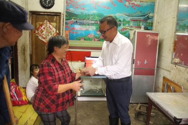 每到一戶困難家庭,陳區(qū)長(zhǎng)和孔總都詳細(xì)詢問了困難村民的生活狀況和經(jīng)濟(jì)收入情況,看住房、生活設(shè)施,鼓勵(lì)他們要堅(jiān)定脫貧信心、保持樂觀向上的生活態(tài)度。在五里鎮(zhèn)王店村貧困戶王國(guó) 軍家中,了解到王國(guó) 軍常年在外打工,其妻子獨(dú)自一人帶著智障兒子,想養(yǎng)兩頭母豬生崽,但又缺少資金購(gòu)買母豬苗后,孔總當(dāng)場(chǎng)捐出2000元幫助她解決豬苗錢問題,并希望王國(guó) 軍能回鄉(xiāng)到永和建設(shè)集團(tuán)公司工作。