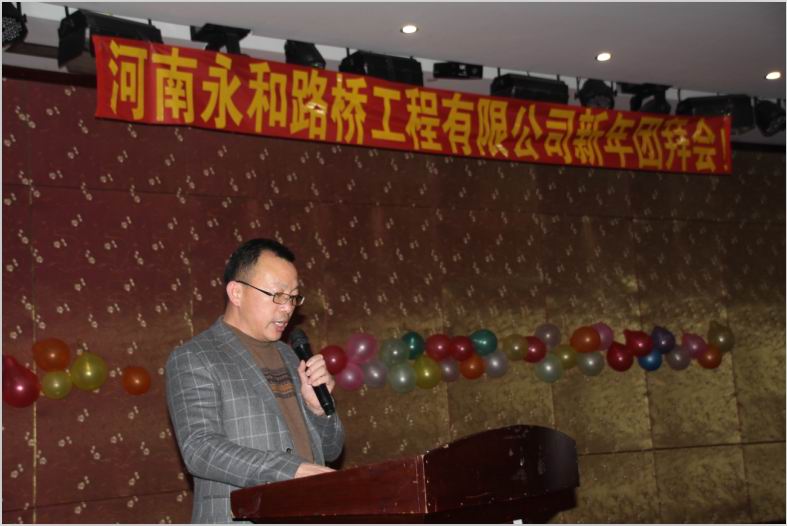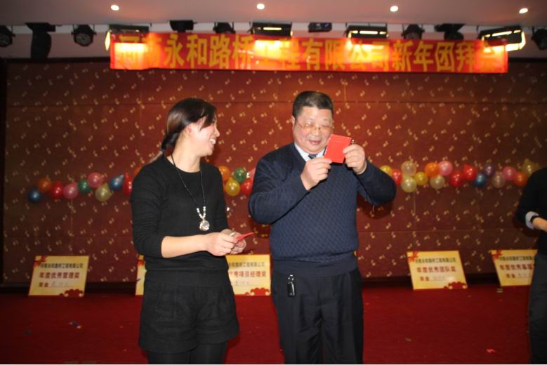 2016年2月4日晚,農歷臘月26日晚,河南永和路橋工程有限公司在信陽市五星 級酒店中樂百花酒店隆重的舉行了2016年新春團拜會,本次團拜會由公司全體員工及家屬、公司的合作伙伴、朋友等共同出席,大家歡聚一堂、把酒言歡、其樂融融。公司董事長孔總發(fā)表新年賀詞并代表公司對年度優(yōu) 秀個人及團隊進行了表彰。公司還為到場的每位小寶寶送上新年祝福和紅包,并準備了抽獎環(huán)節(jié)。大家歡歌笑語,一直將熱鬧、愉快的氛圍維持到午夜。