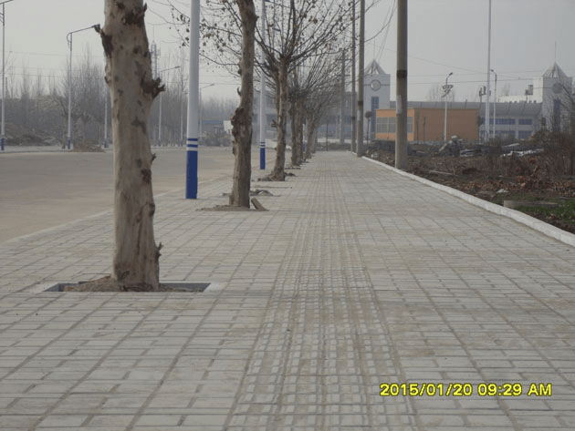 我公司組織施工的“羅山縣產(chǎn)業(yè)集聚區(qū)部分主干道人行道道路硬化一標(biāo)段”經(jīng)過90天的緊張施工,現(xiàn)已全面完工。該標(biāo)段包括羅山縣產(chǎn)業(yè)集聚區(qū)站前西道(局部)和工業(yè)大道(局部)人行道建設(shè)工程。其中站前西道人行道建設(shè)工程施工長度為602.4M;工業(yè)大道人行道建設(shè)工程施工長度為630.5M,兩路段工程寬度皆為5M,結(jié)構(gòu)層從下至 上依次為:8CM碎石基層、10CM砼墊層、3CM水泥砂漿結(jié)合層、6CM人行道磚。該工程正在準(zhǔn)備驗收。